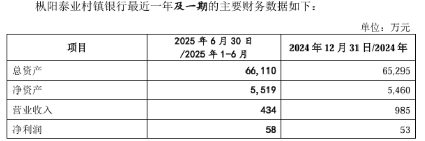 从经营数据来看,截至2025年6月末,枞阳泰业村镇银行资产总额6.61亿元,净资产5519万元,2025年上半年实现营收、净利润分别为434万元、58万元。尽管盈利规模不大,但该行于近年实现扭亏为盈,据企业预警通数据,2016年,枞阳泰业村镇银行曾亏损近2200万元。